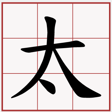 過甚。形容程度極高(多用於肯定)。很(多用於否定)。極、最。高或大。身分、輩分最高或更高的。稱謂:➊ 用以尊稱輩分極高的長輩。如:「祖太」、「阿太」。➋ 參見「太太」條。
