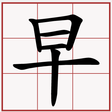 天剛亮的時候。參見「早安」條。姓。如晉代有早衍。晨間的。較原時間提前的,未到預定時間的。不晚。初時的、先時的。事情的發生離現在已有一段時間。已經。還未到適當時間的。到達某一程度還有段距離的。